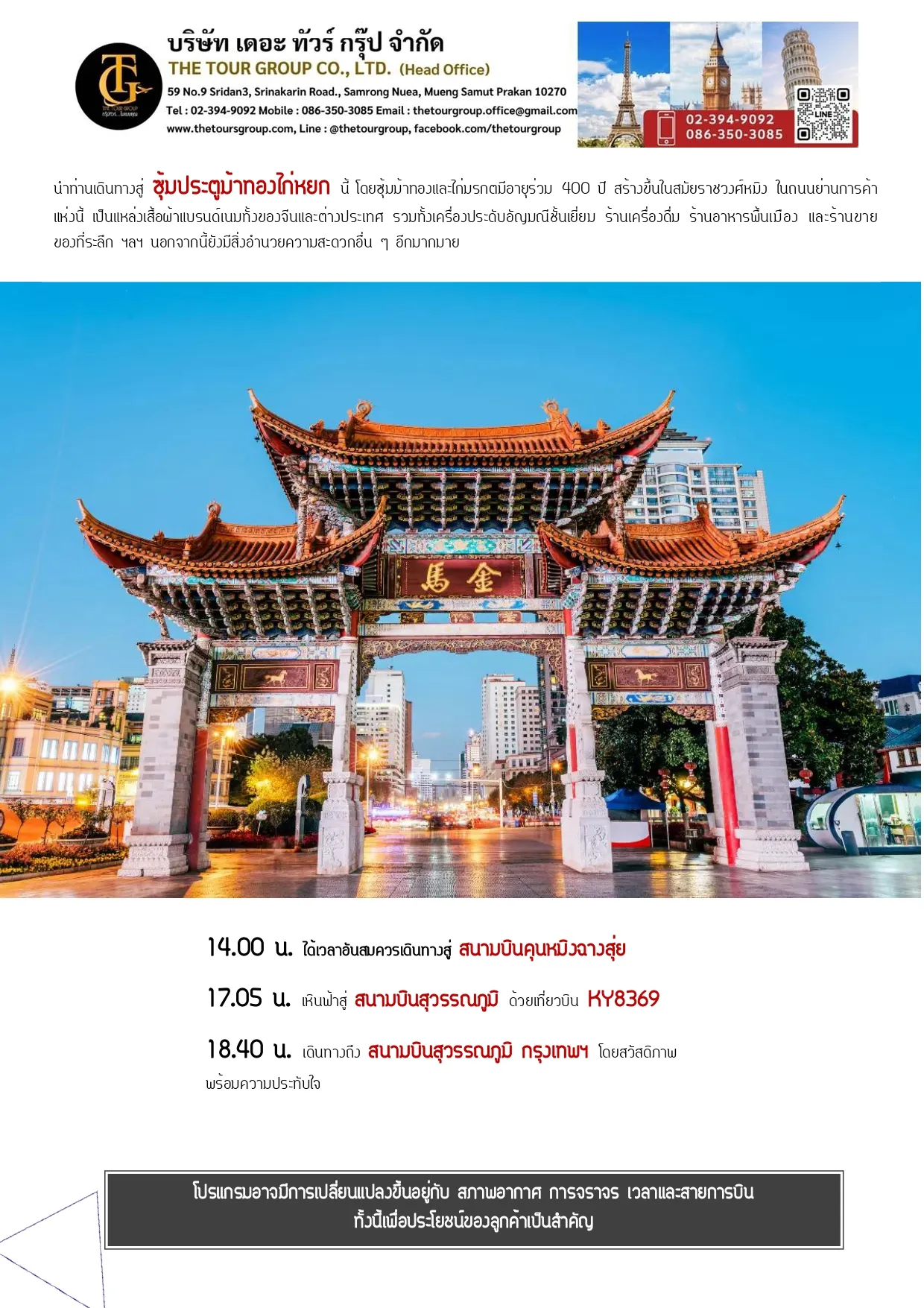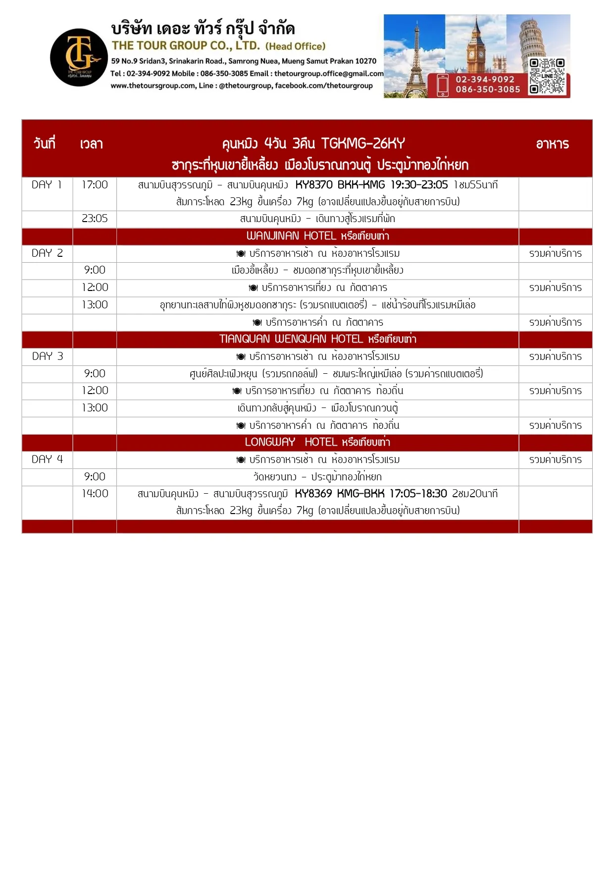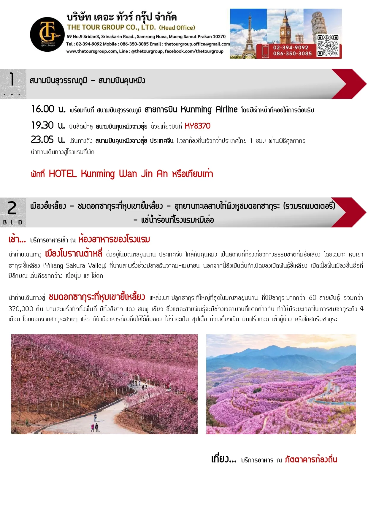 TGKMG-26KY  คุนหมิง ซากุระที่หุบเขายี้เหลี้ยง เมืองโบราณกวนตู้ ประตูม้าทองไก่หยก 4วัน 3คืน